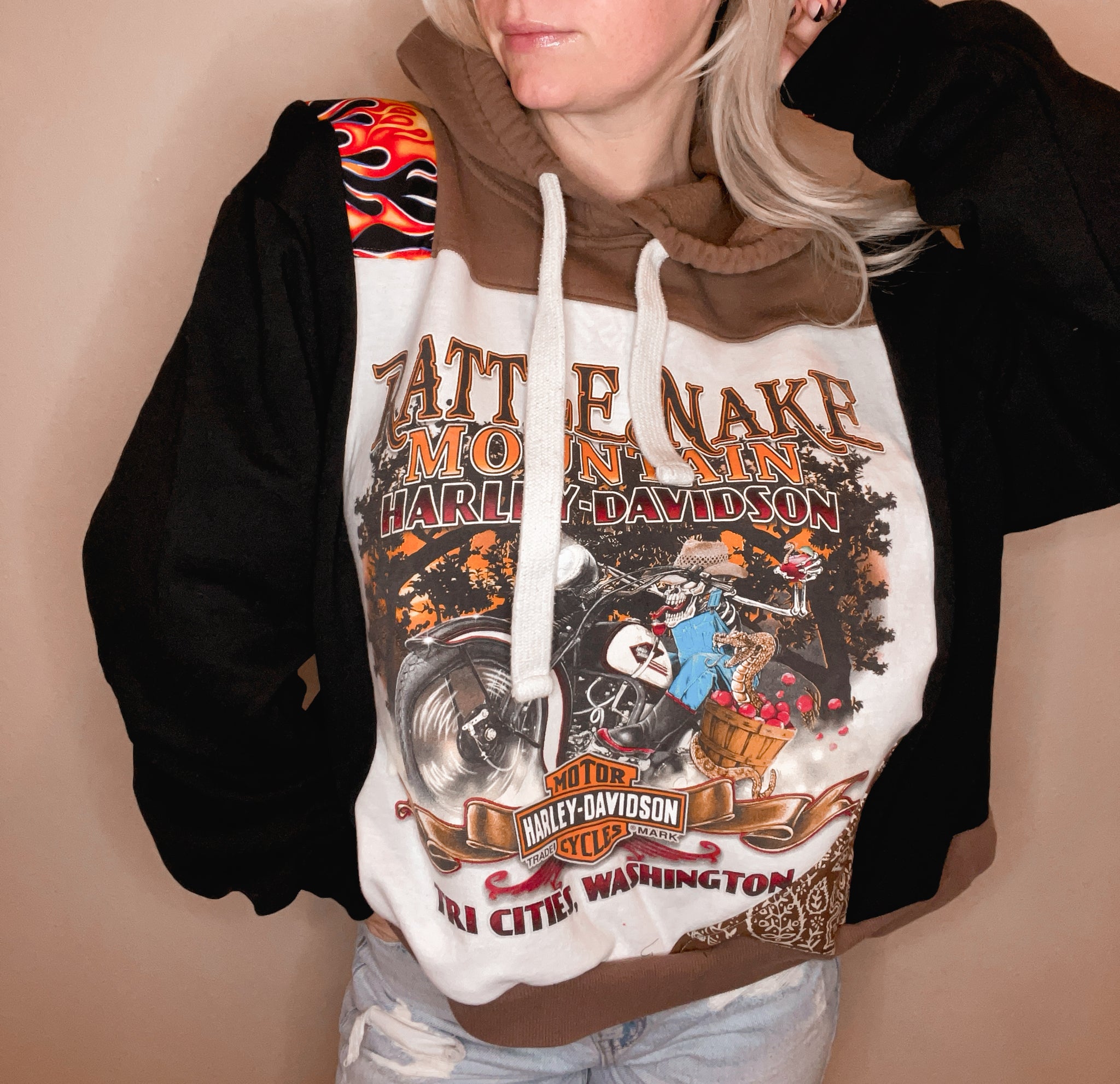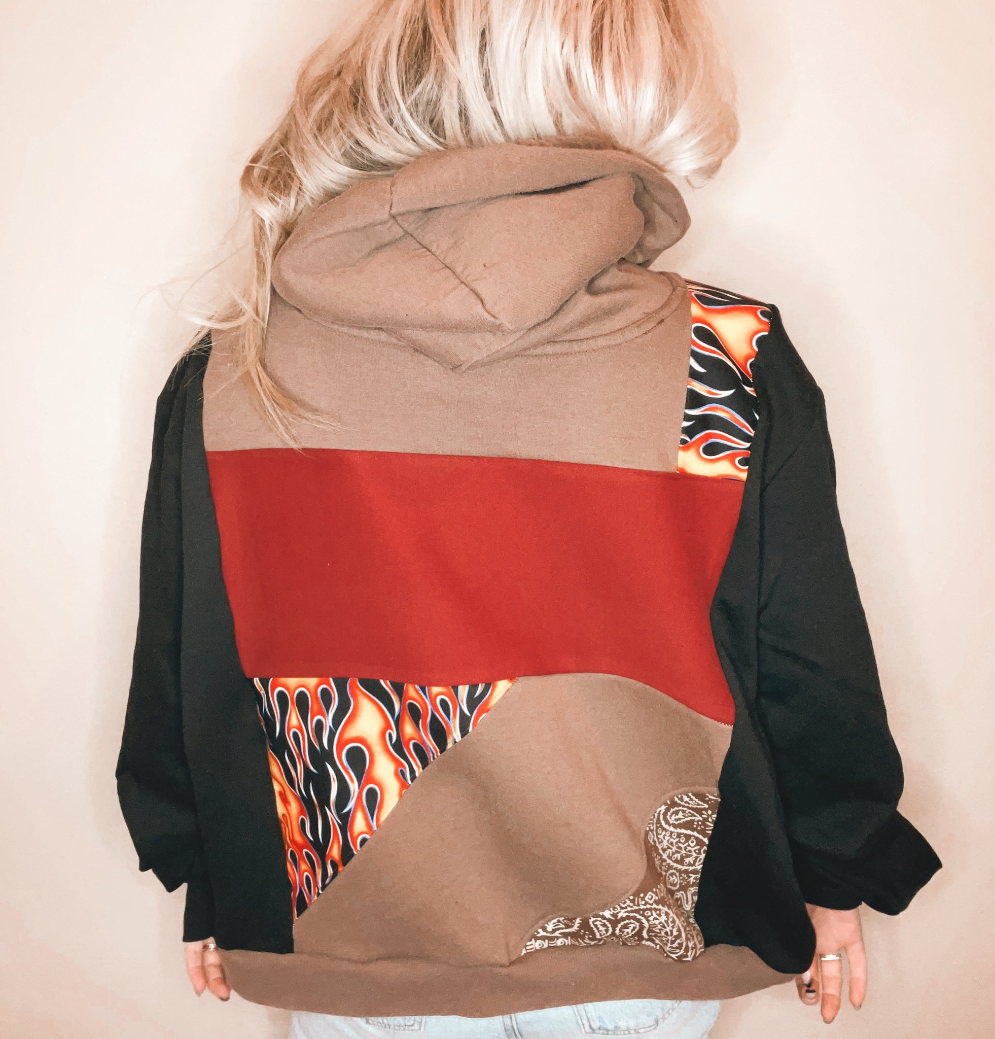 Created from genuine repurposed fabrics, some items may feature purposely distressed or faded elements.