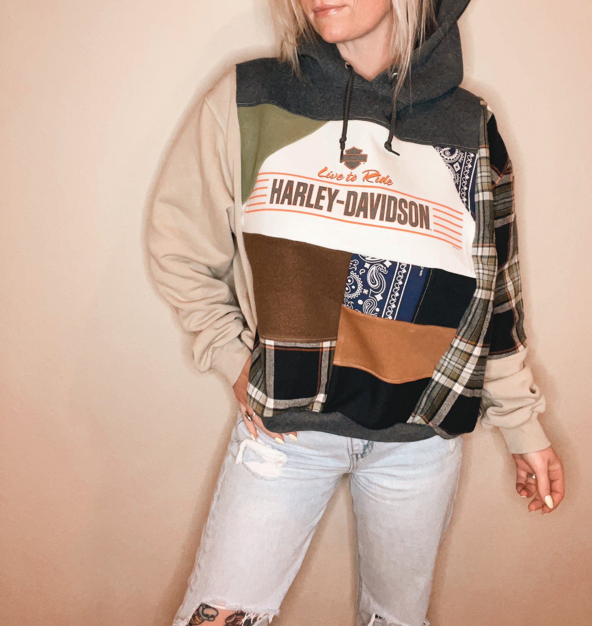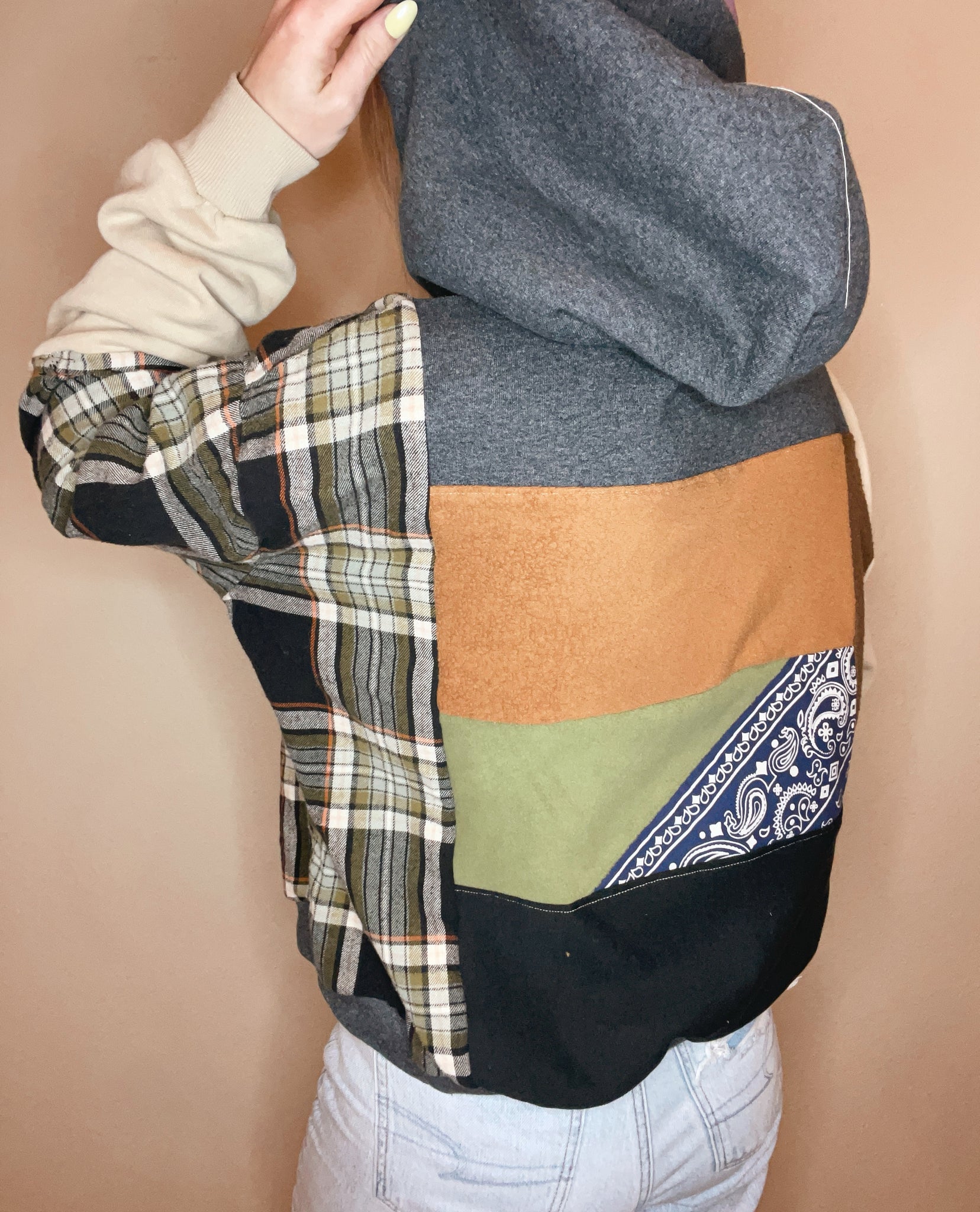 Created from genuine repurposed fabrics, some items may feature purposely distressed or faded elements.