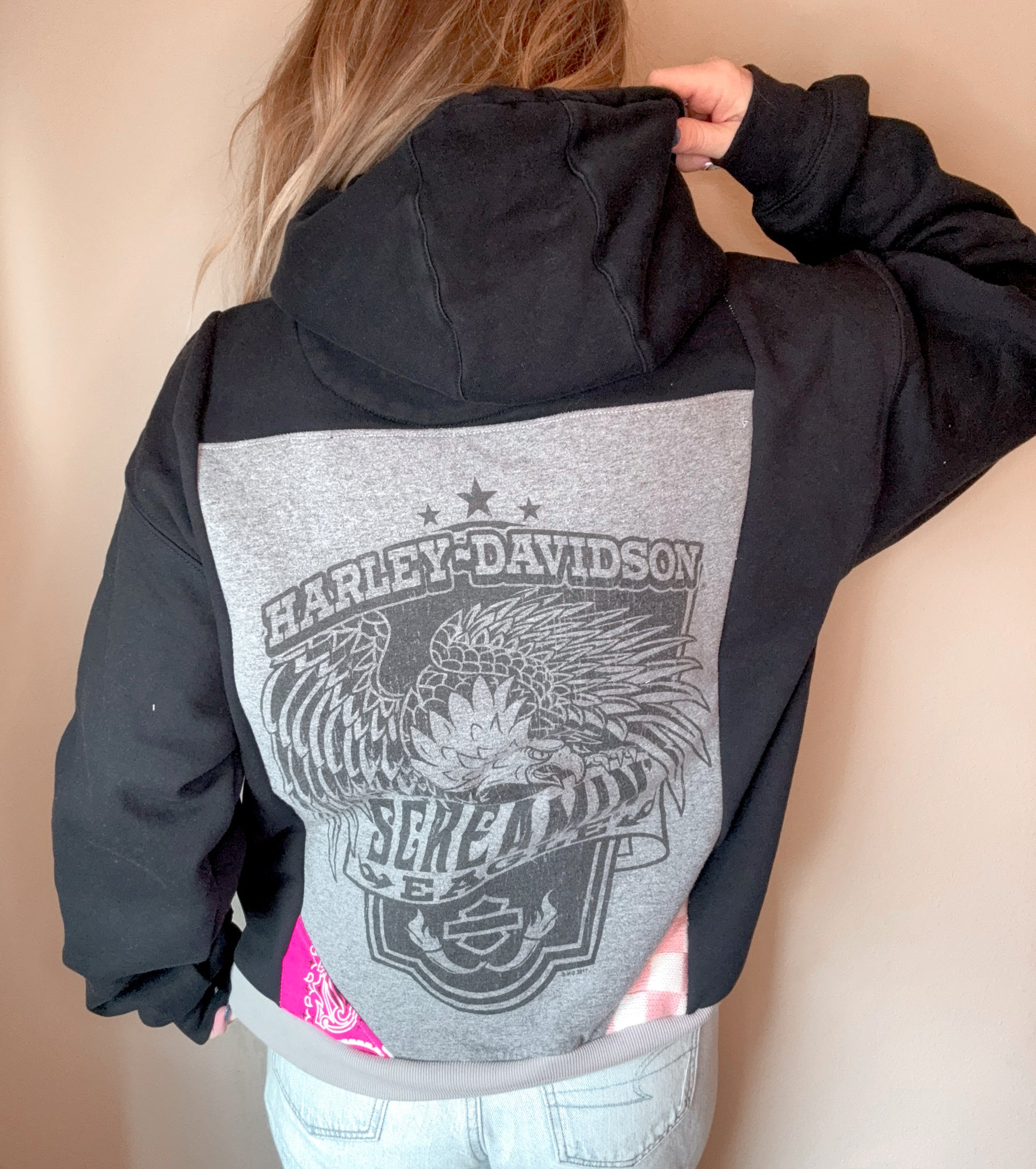 Created from genuine repurposed fabrics, some items may feature purposely distressed or faded elements.