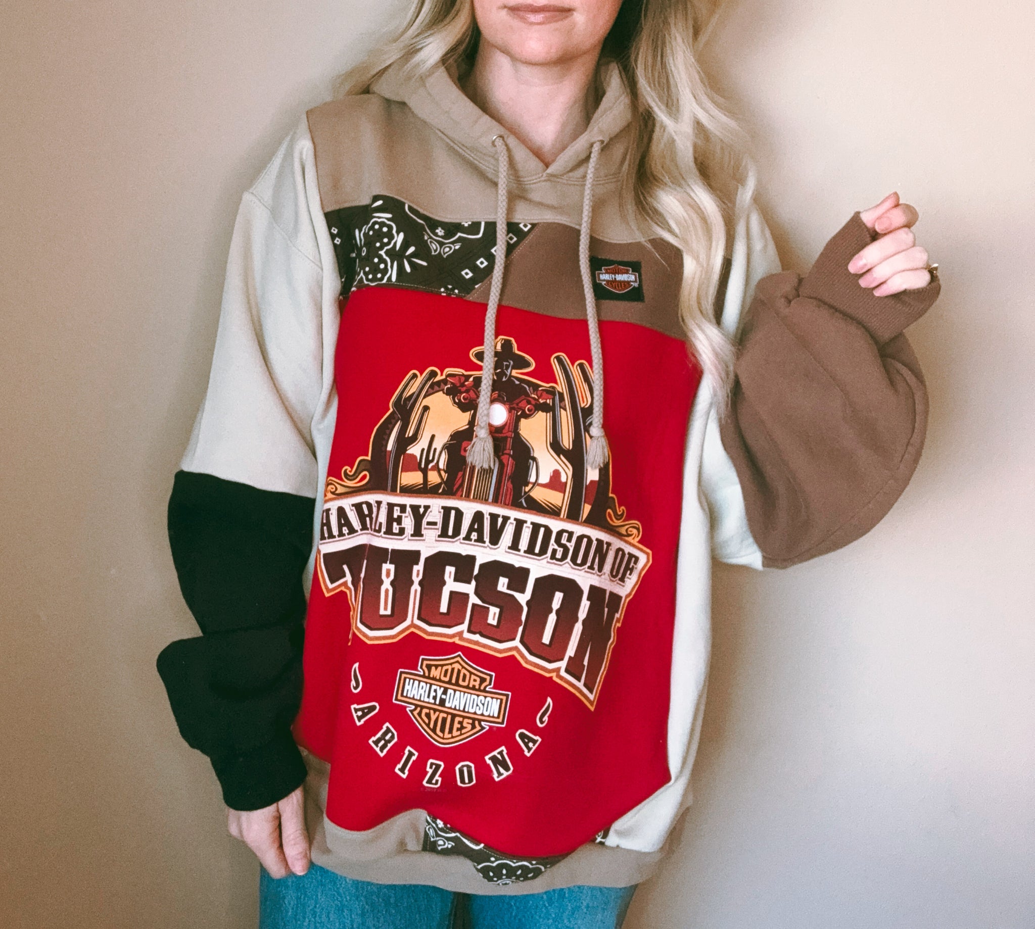 Created from genuine repurposed fabrics, some items may feature purposely distressed or faded elements.