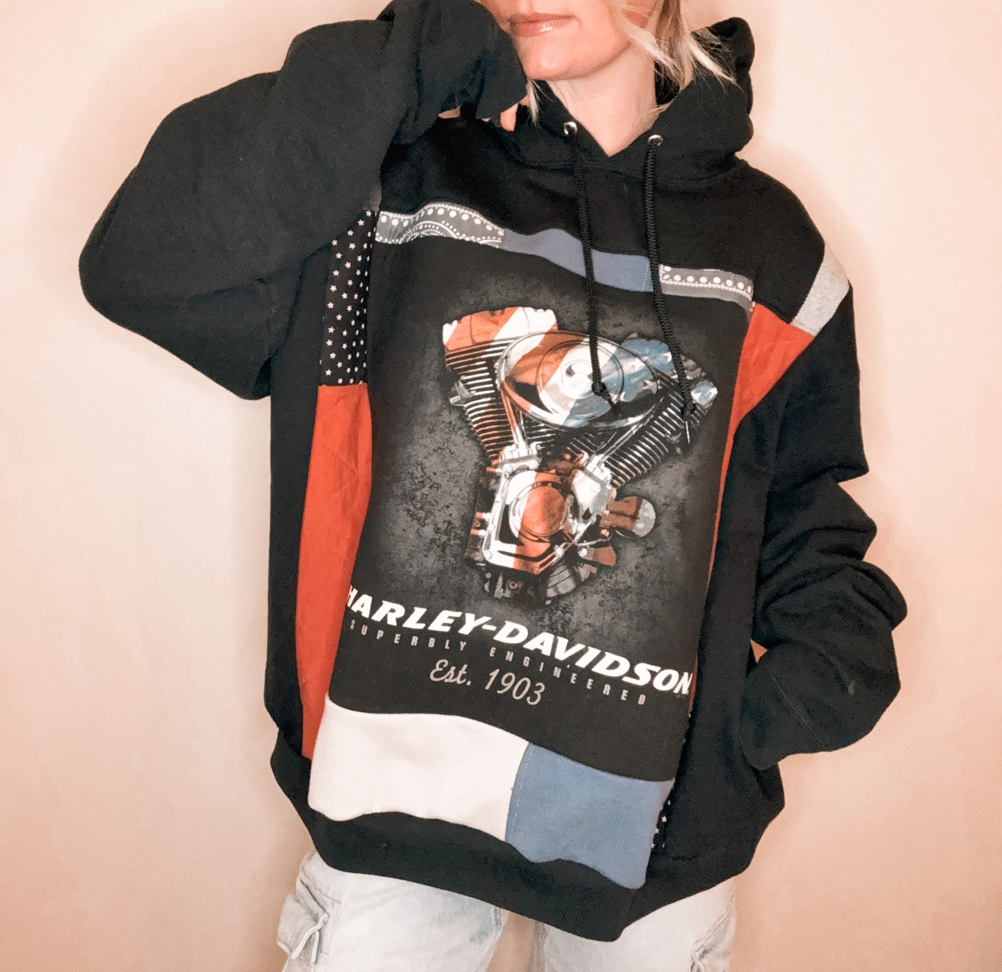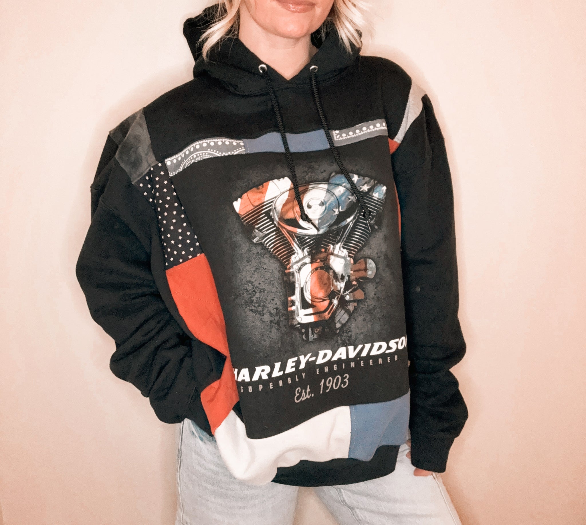 Created from genuine repurposed fabrics, some items may feature purposely distressed or faded elements.