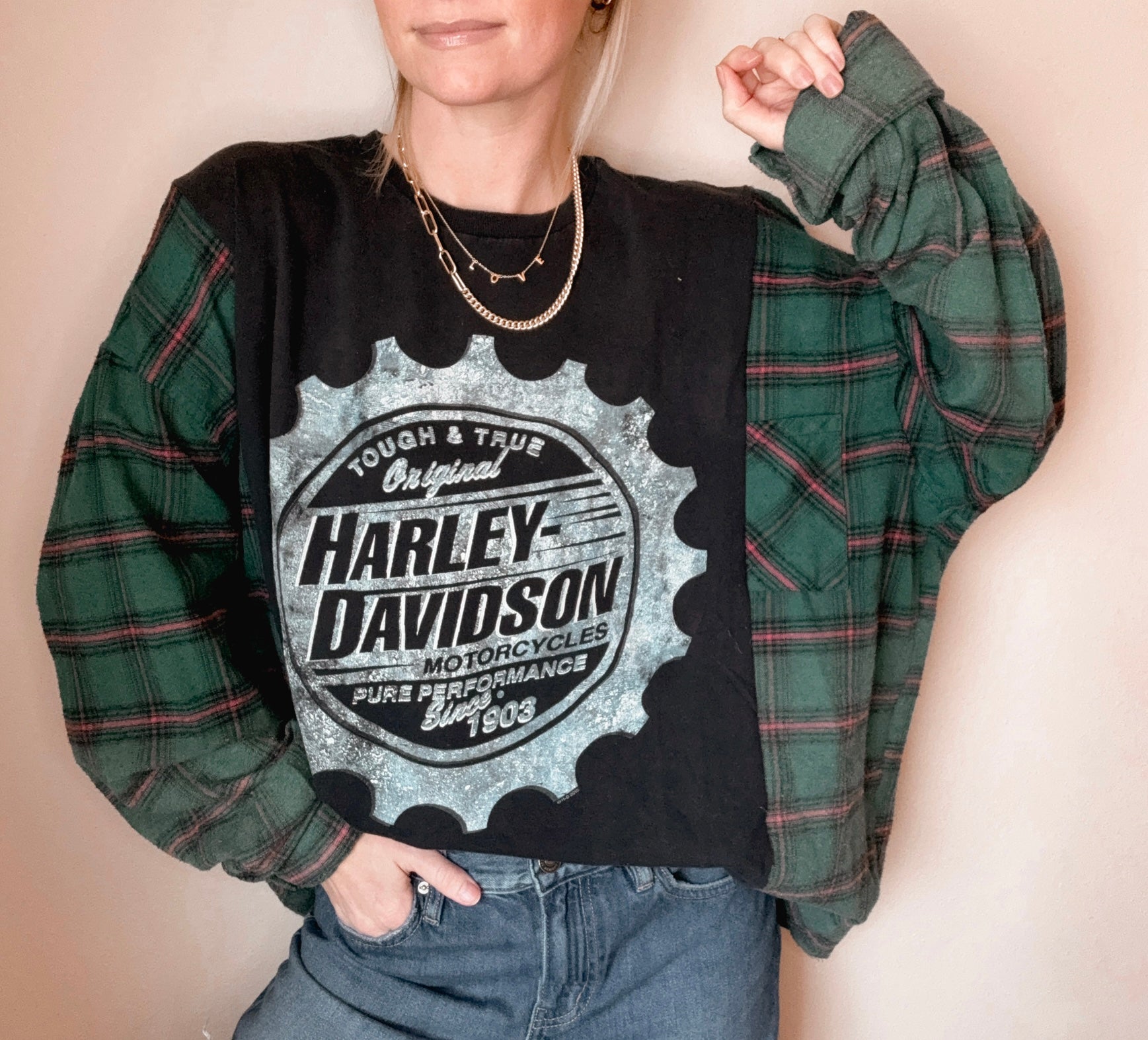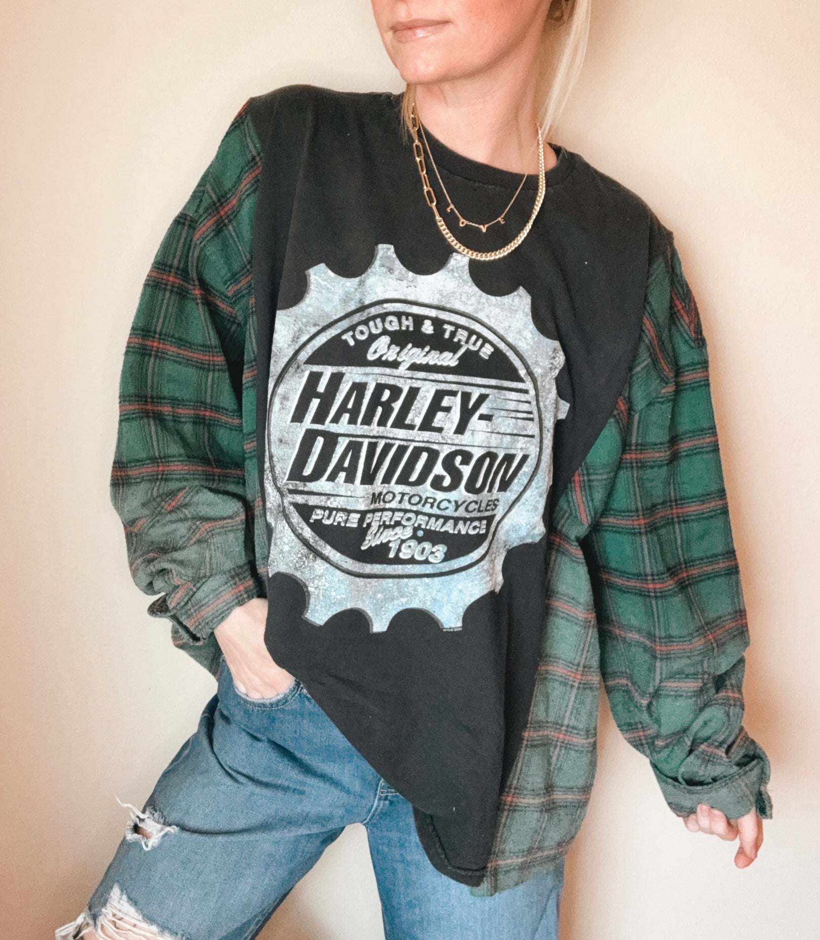 Created from genuine repurposed fabrics, some items may feature purposely distressed or faded elements.